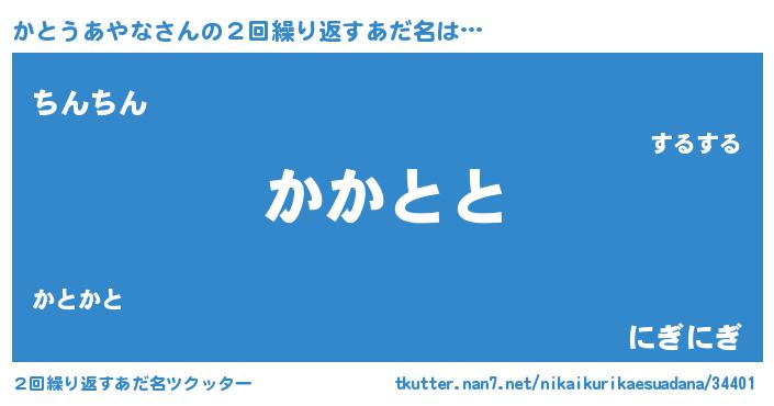 | 欧米人風あだ名 | 『かとうあやなクリステル』 |