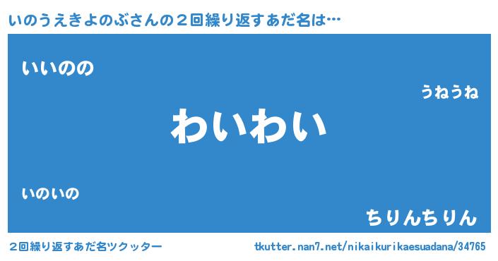 | 男性向けラノベタイトル風あだ名 | 『転生したらいのうえきよのぶだった件』 |