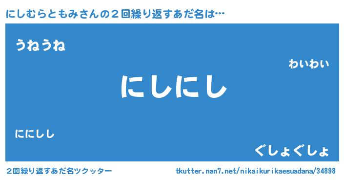| ポケモン風あだ名 | 『ニシチュウ』『ヒニシムラトモミ』 |