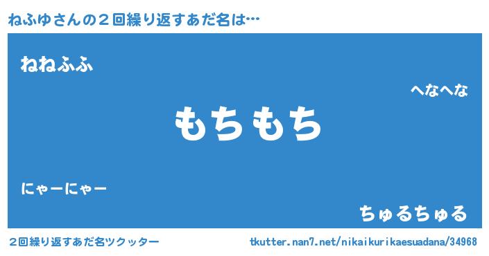 | 男性向けラノベタイトル風あだ名 | 『Re:ねふゆから始める異世界生活』 |