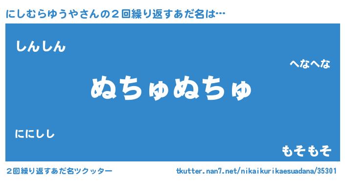 | 意味不明あだ名 | 『とにかく怪しいにしむらゆうや』 |