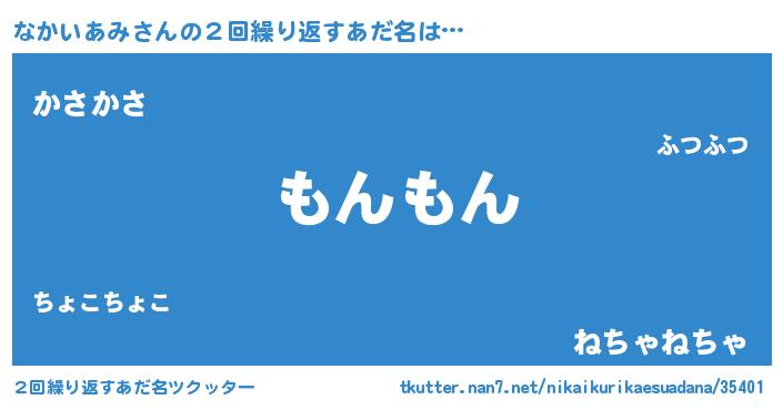| 男性向けラノベタイトル風あだ名 | 『Re:なかいあみから始める異世界生活』 |