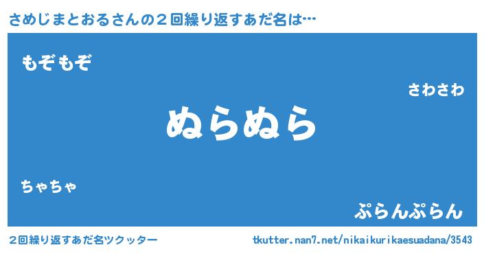 | 男性向けラノベタイトル風あだ名 | 『さめじまとおるの嫁は女の子じゃないと思った?』 |