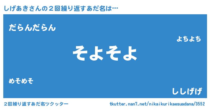 | ヘコむあだ名 | 『レバニラ』『しげを』『しげふぇ~』 |