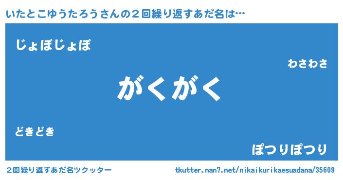 | ヘコむあだ名 | 『いたとこゆうたろう(笑)』『いたっふぃ~』 |
