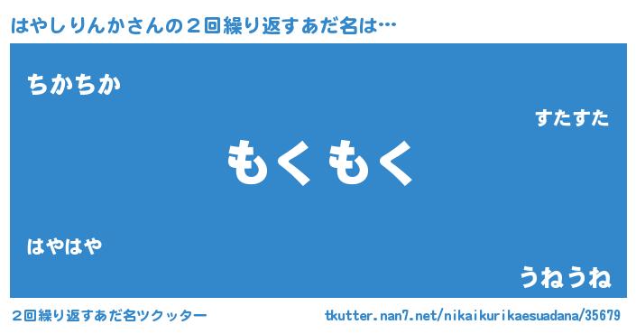 | 男性向けラノベタイトル風あだ名 | 『Re:はやしりんかから始める異世界生活』 |