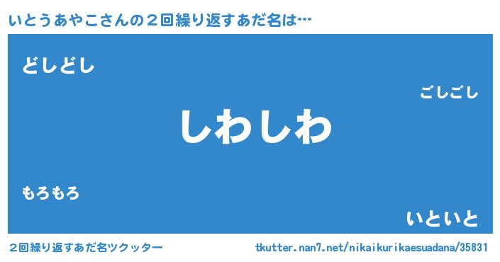 | ヘコむあだ名 | 『いとっふぃ~』『いとうあやこ(震え声)』 |