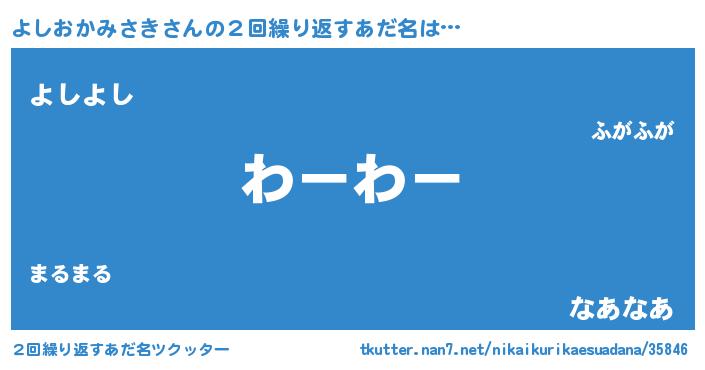 | 意味不明あだ名 | 『なめこ科よしおかみさき属』 |