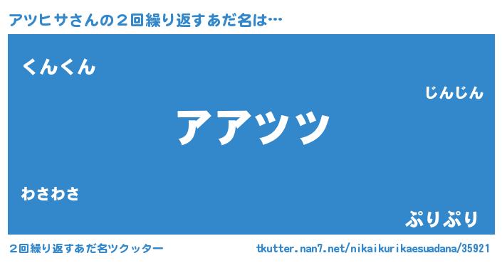 | ヒーロー風カッコイイあだ名 | 『ウルトラアツヒサマン』『ネオアツヒサ』 |