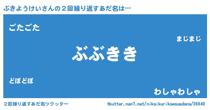 | 可愛いあだ名 | 『ぶきちー』『ぶきようけいママ』 |