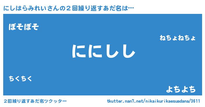 | 意味不明あだ名 | 『にしはらみれいフォーエバー』 |