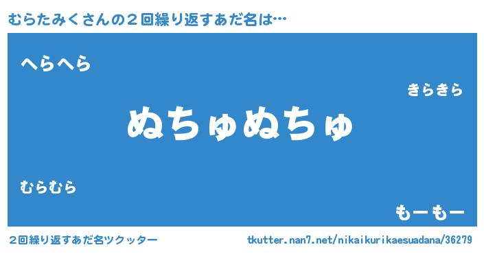 | ポケモン風あだ名 | 『ヒムラタミク』『ムックウザ』 |