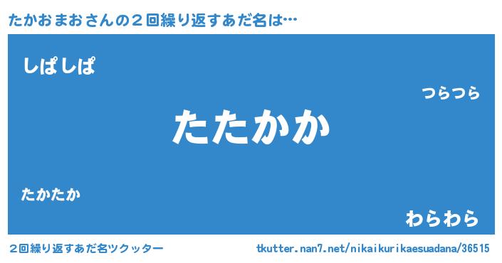 | 欧米人風あだ名 | 『たかおまおクリステル』 |