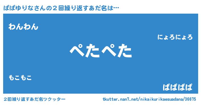 | 欧米人風あだ名 | 『ダニエルばばゆりな』 |
