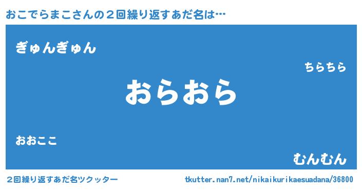 | 女子向けラノベタイトル風あだ名 | 『おこでらまこの卵を拾いまして』 |