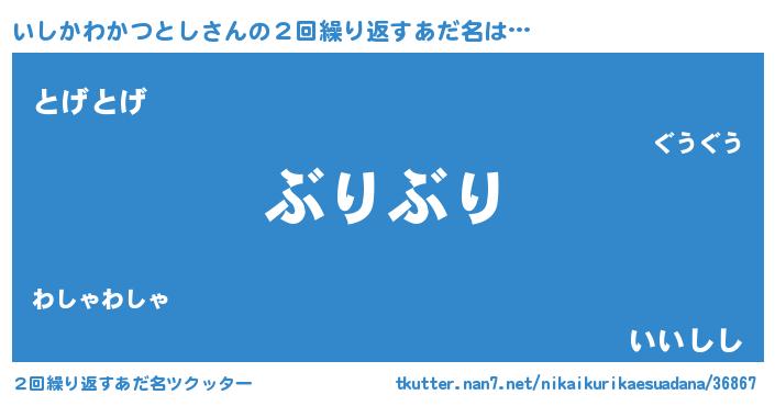 | 男性向けラノベタイトル風あだ名 | 『おまえをオタクにしてやるから、俺をいしかわかつとしにしてくれ! 』 |