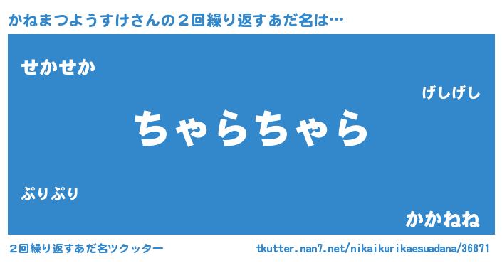 | 意味不明あだ名 | 『住所不定無職かねまつようすけ(50歳)』 |
