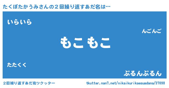 | 男性向けラノベタイトル風あだ名 | 『Re:たくぼたかうみから始める異世界生活』 |