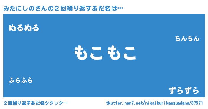 | 男性向けラノベタイトル風あだ名 | 『Re:みたにしのから始める異世界生活』 |