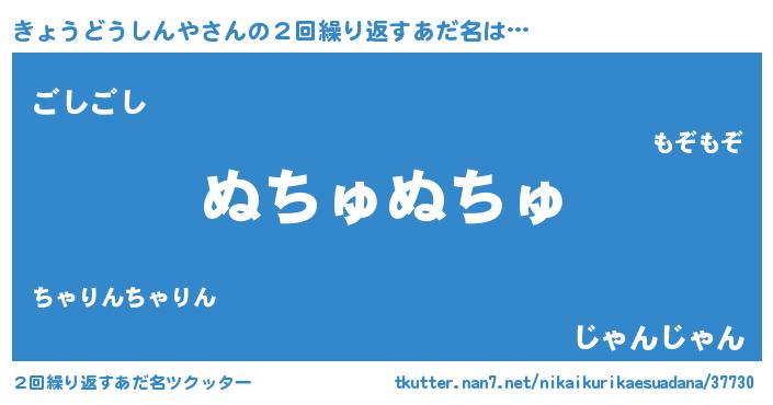| 欧米人風あだ名 | 『ウサインきょうどうしんや』 |