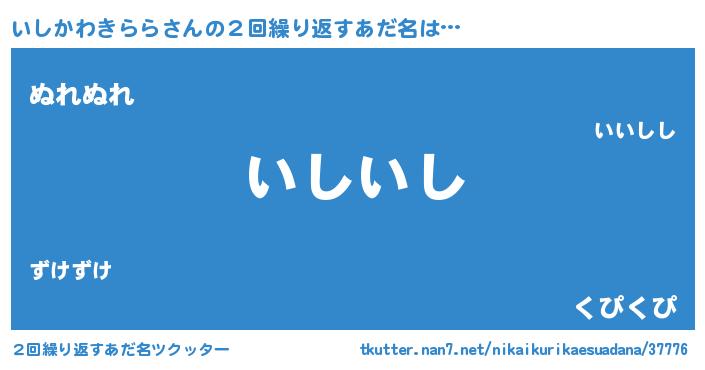 | ポケモン風あだ名 | 『イシチュウ』『ヒイシカワキララ』 |