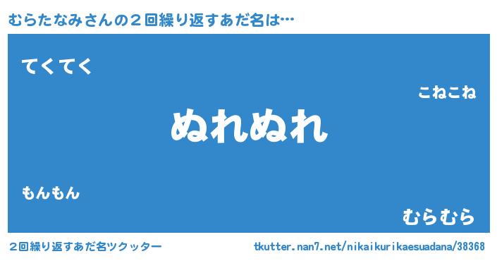 | 男性向けラノベタイトル風あだ名 | 『むらたなみの嫁は女の子じゃないと思った?』 |