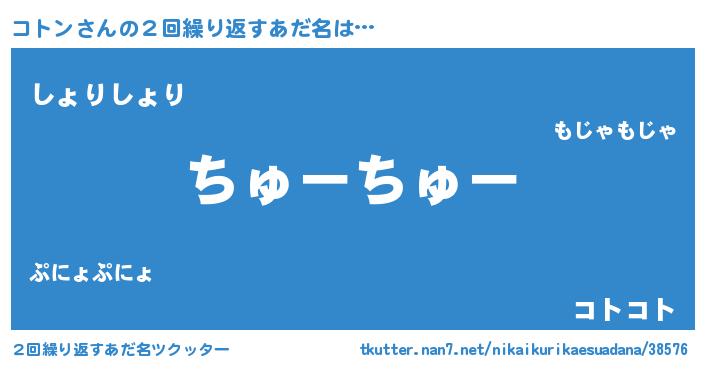 | 意味不明あだ名 | 『住所不定無職コトン(12歳)』『自称コトン』 |