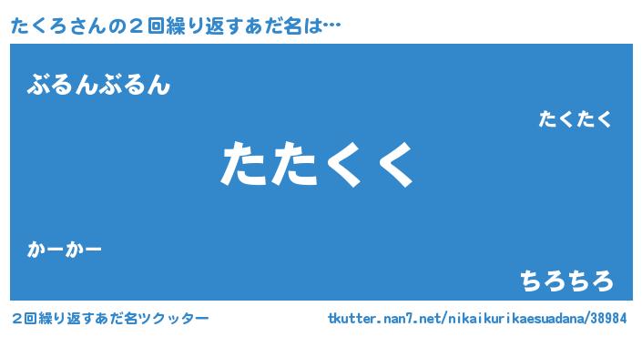 | 女子向けラノベタイトル風あだ名 | 『たくろの雑貨屋さん』『たくろ恋絵巻』 |