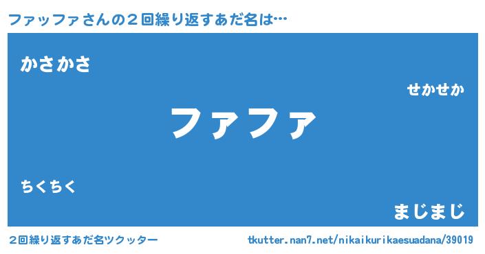 | 男性向けラノベタイトル風あだ名 | 『ファッファの憂鬱』『緋弾のファッファ』 |