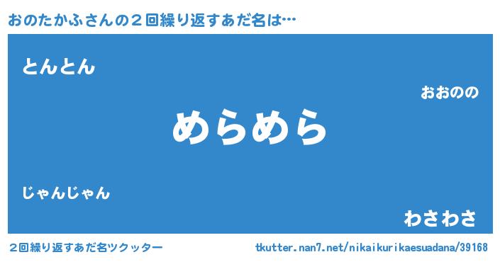 | 意味不明あだ名 | 『自称おのたかふ』『ペロリンおのたかふ』 |