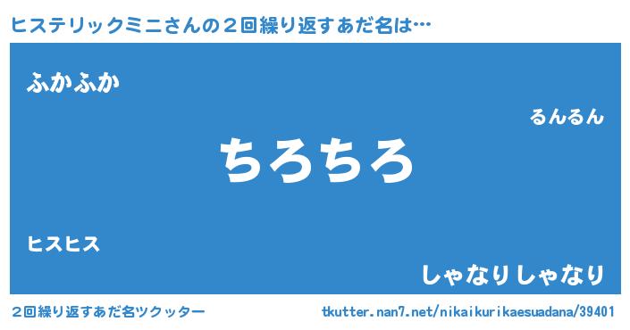 | ヒーロー風カッコイイあだ名 | 『愛の使者ヒステリックミニ』 |