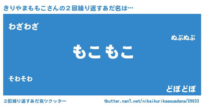 | 男性向けラノベタイトル風あだ名 | 『Re:きりやまももこから始める異世界生活』 |