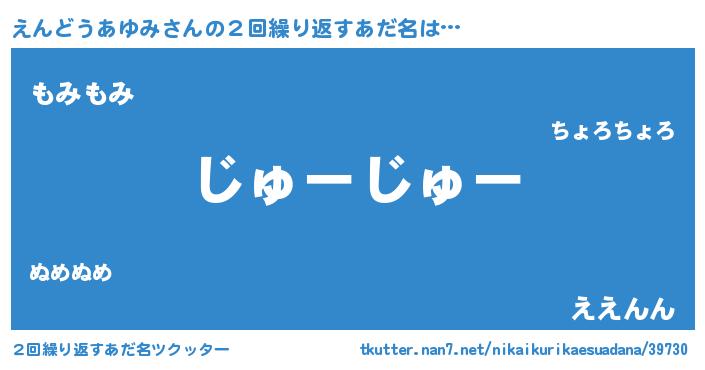 | 意味不明あだ名 | 『住所不定無職えんどうあゆみ(98歳)』 |