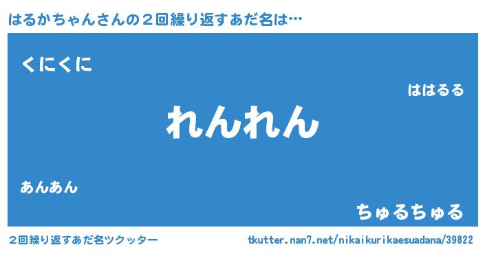 | 男性向けラノベタイトル風あだ名 | 『転生したらはるかちゃんだった件』 |