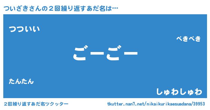 | 意味不明あだ名 | 『永久保存ついざき』『自称ついざき』 |