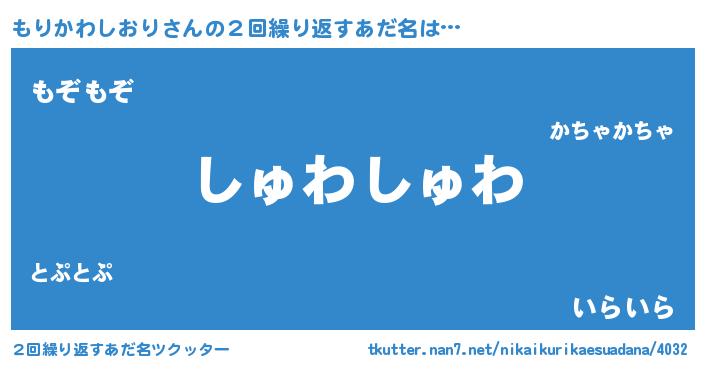 | ヘコむあだ名 | 『もりお』『もりかわしおり(笑)』 |