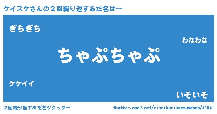 | ヘコむあだ名 | 『ケイスケ(苦笑)』『ケイを』『豆乳』 |