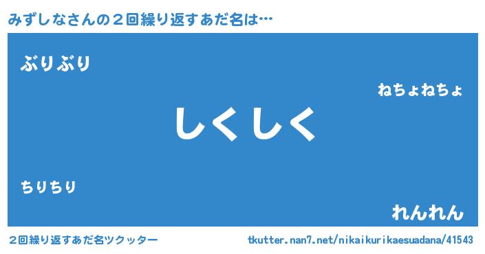 | ヒーロー風カッコイイあだ名 | 『仮面ミズダー』『友情の使者みずしな』 |