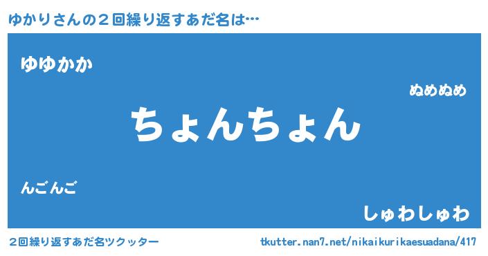 | 欧米人風あだ名 | 『ゆかり・ステッグマイヤー』 |
