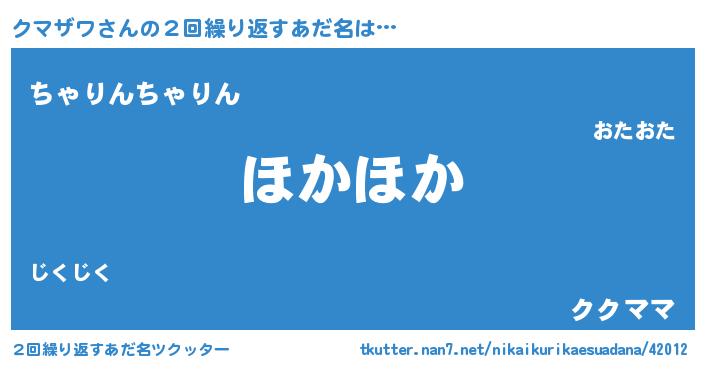 | 男性向けラノベタイトル風あだ名 | 『ノーゲーム・ノークマザワ』 |