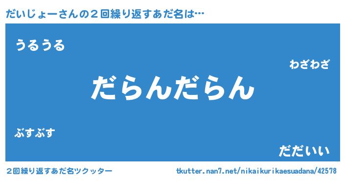 | ピコ太郎風あだ名 | 『ダイ二郎』『ピダ太郎』『ダダ太郎』 |