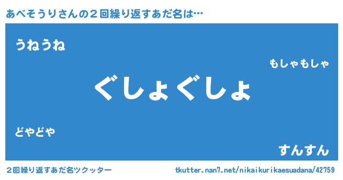 | 意味不明あだ名 | 『永久保存あべそうり』『自称あべそうり』 |