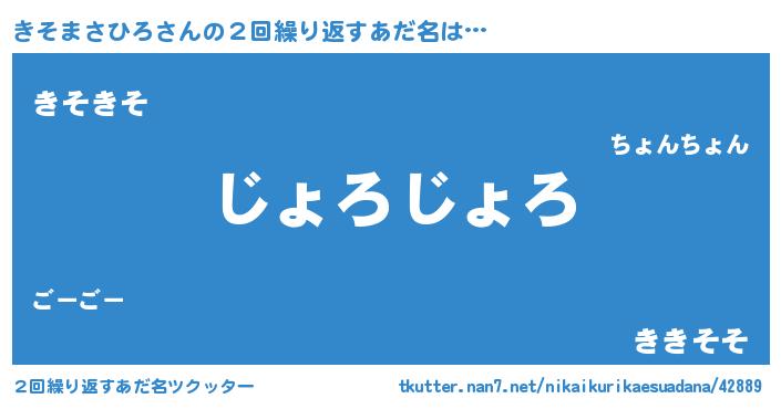 | 男性向けラノベタイトル風あだ名 | 『この素晴らしい世界にきそまさひろを!』 |
