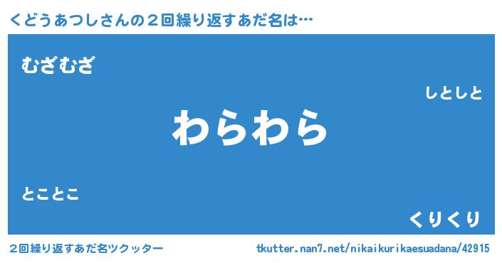 | ヘコむあだ名 | 『くどうあつし(爆)』『くどぷりん』 |