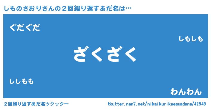 | 意味不明あだ名 | 『住所不定無職しものさおり(71歳)』 |