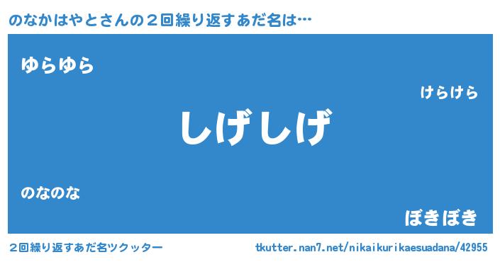| 意味不明あだ名 | 『住所不定無職のなかはやと(6歳)』 |