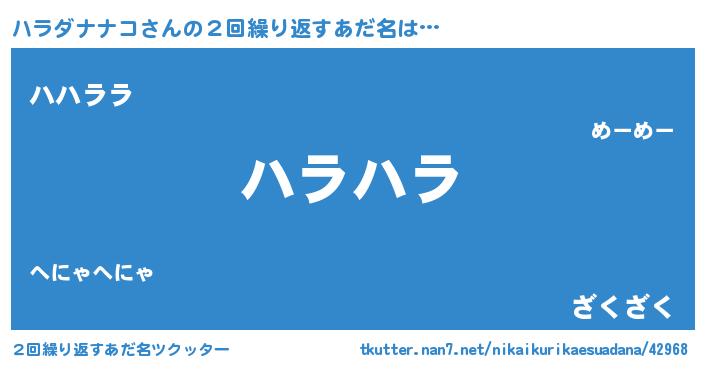 | ヒーロー風カッコイイあだ名 | 『スーパーハラダナナコ』『仮面ハラダー』 |