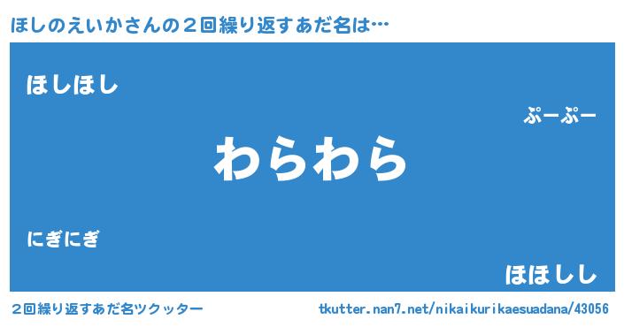 | 男性向けラノベタイトル風あだ名 | 『ほしのえいか~年齢イコール彼女いない歴の魔法使い~』 |