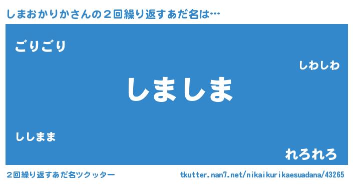 | 可愛いあだ名 | 『しんしん』『しまおかりかママ』 |