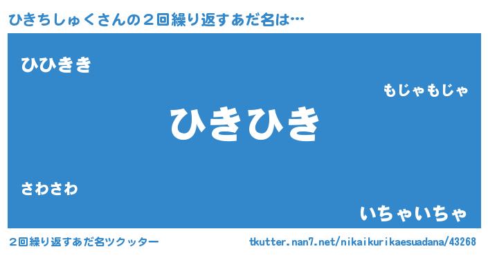 | ヒーロー風カッコイイあだ名 | 『スーパーヒキチシュク』『黄金騎士ヒキ』 |